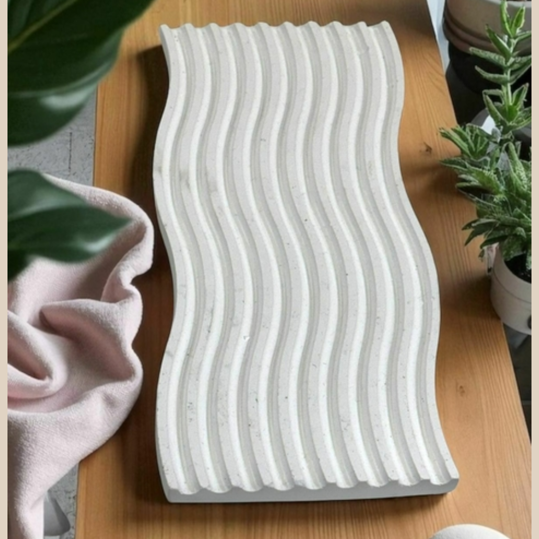La bandeja de líneas onduladas de concreto blanca combina durabilidad y diseño funcional, ideal para organizar objetos con estilo. Su acabado en concreto blanco aporta resistencia y una estética moderna, mientras que las líneas onduladas facilitan la sujeción de elementos, evitando deslizamientos. Perfecta para espacios que requieren orden con un toque contemporáneo y robustez a largo plazo.