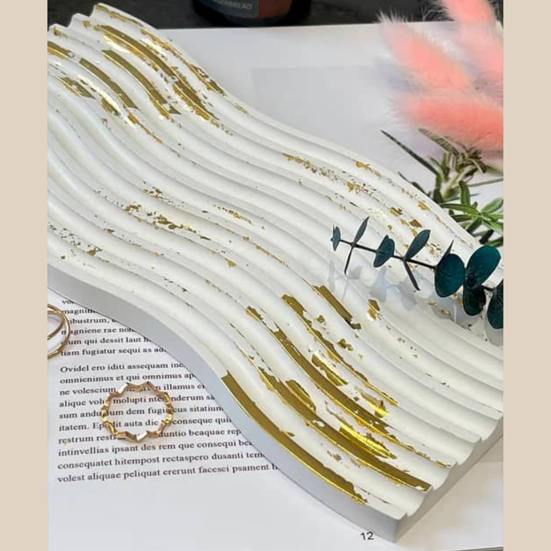 BANDEJA DE LINEAS ONDULADAS DE CONCRETO CON DORADO