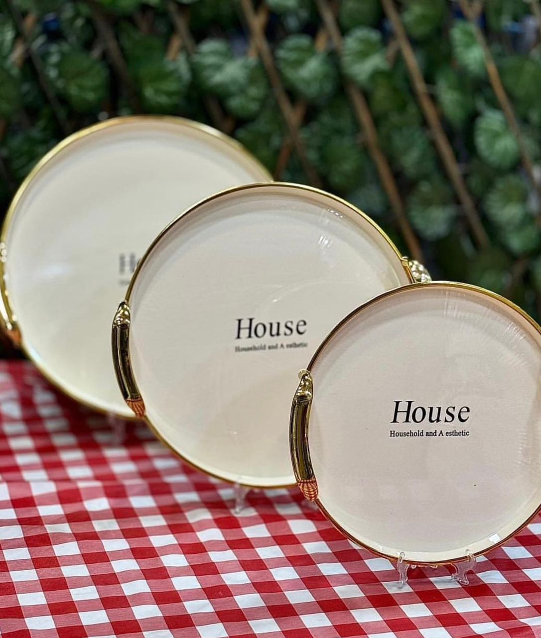 BANDEJA PARA SERVIR REDONDA BLANCA CON ASAS DORADAS