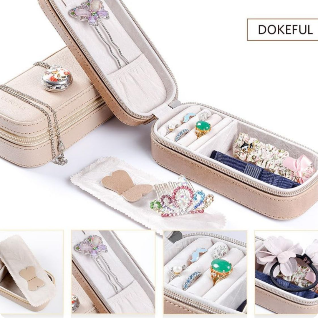 Este joyero rectangular en tonos gris y nude combina elegancia y funcionalidad para mantener tus accesorios organizados y protegidos. Su diseño sobrio y moderno se adapta a cualquier espacio, mientras que sus compartimentos internos facilitan el almacenamiento ordenado de joyas, evitando enredos y daños. Ideal para quienes buscan una solución práctica y estilizada para cuidar sus piezas favoritas.