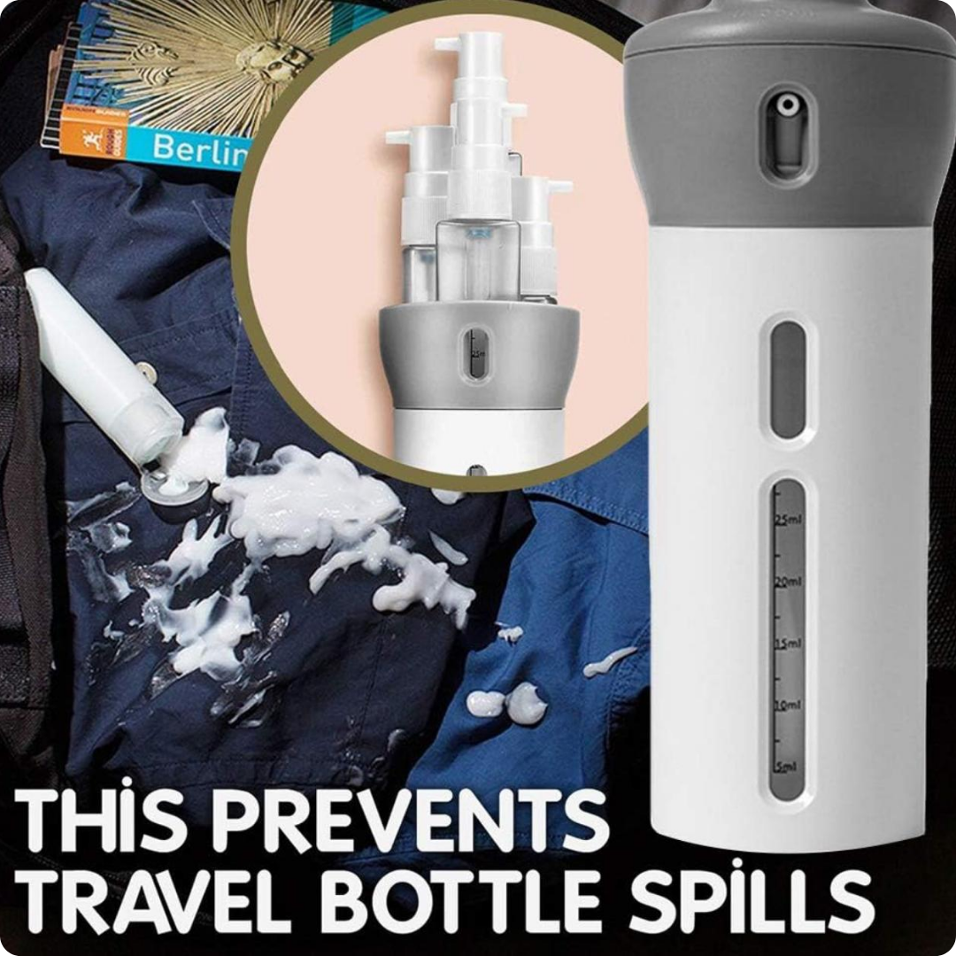 Este juego de dispensadores 4 en 1 en tonos rosado y gris es ideal para organizar y transportar tus productos de cuidado personal durante tus viajes. Compacto y funcional, permite almacenar diferentes líquidos en tubitos separados, facilitando su uso y evitando derrames. Su diseño práctico y elegante combina comodidad con estilo, asegurando que tus esenciales estén siempre a mano y bien protegidos. Perfecto para quienes buscan eficiencia y orden en sus desplazamientos.